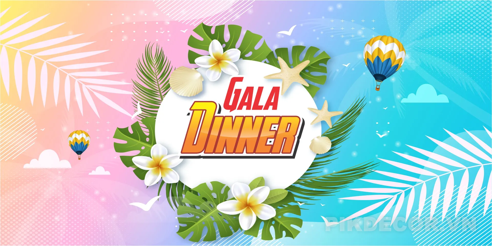 Mẫu Phông Nền Backdrop Team Building Gala Dinner Chủ Đề Biển Nhiệt Đới Mùa Hè Sôi Động Độc Đáo