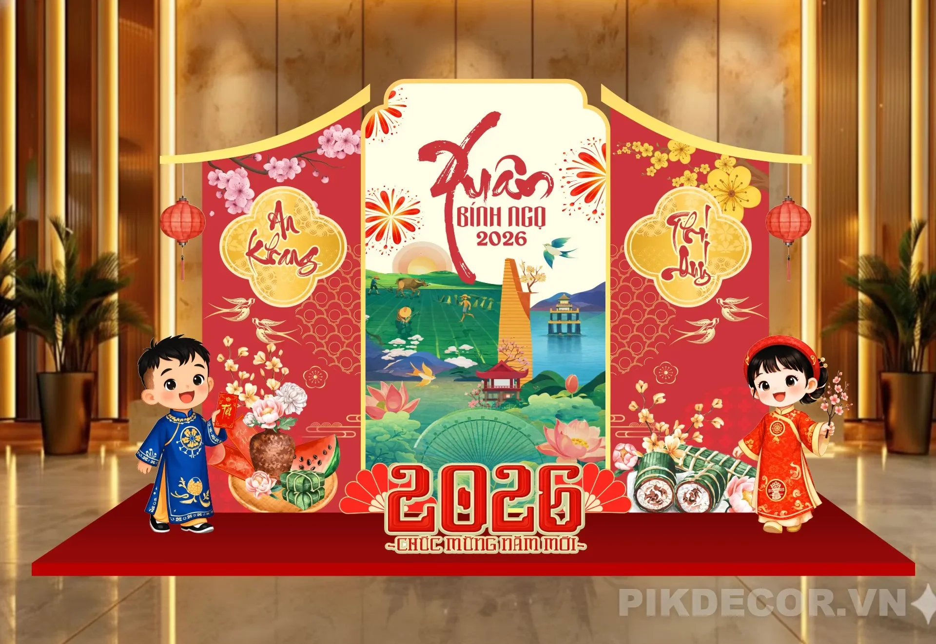 Backrop Decor Tết Bính Ngọ 2026 Mới Nhất