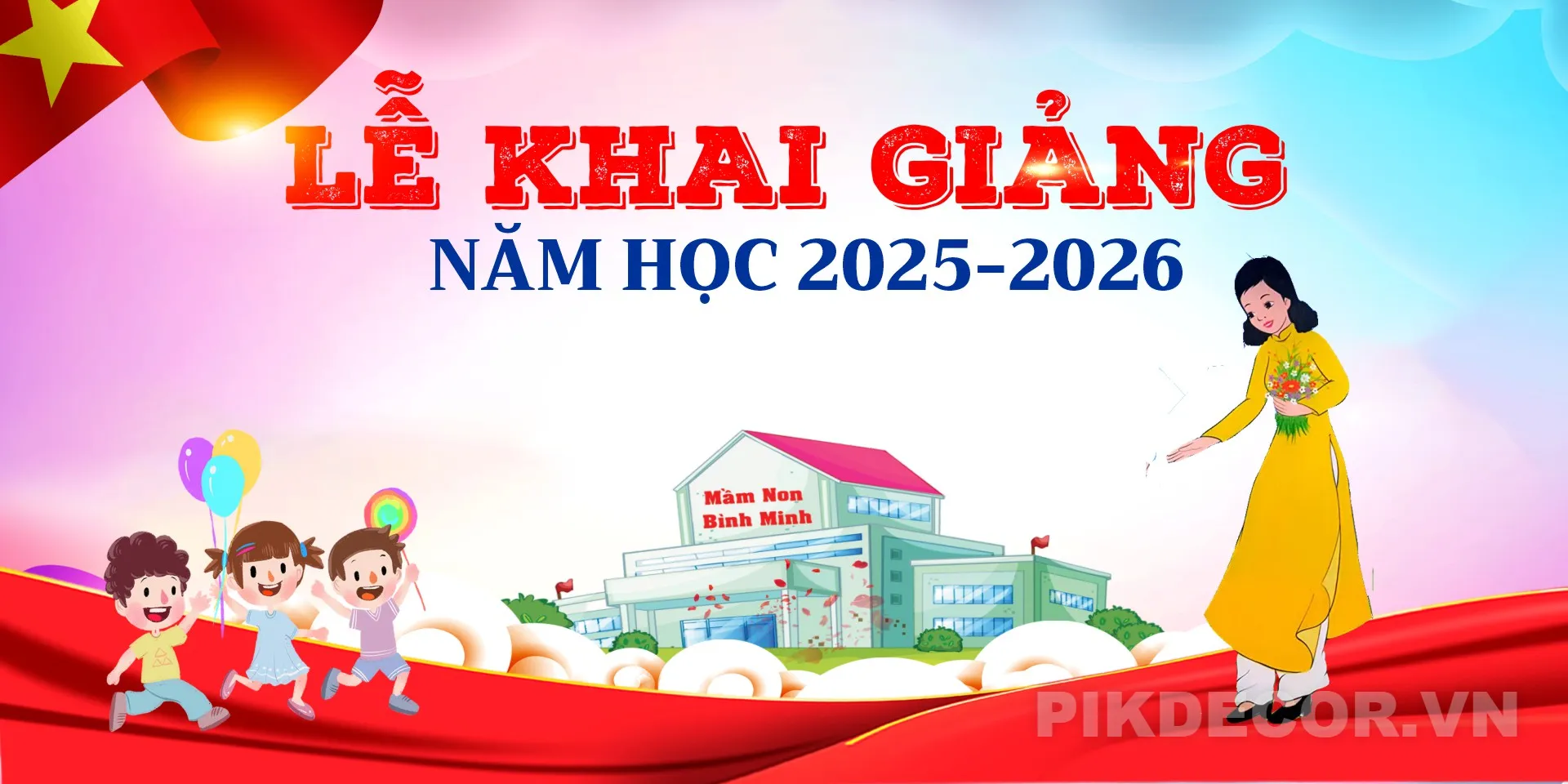Mẫu Backdrop Khai Giảng Năm Học Mới – Trang Trí Sân Khấu Trường Mầm Non