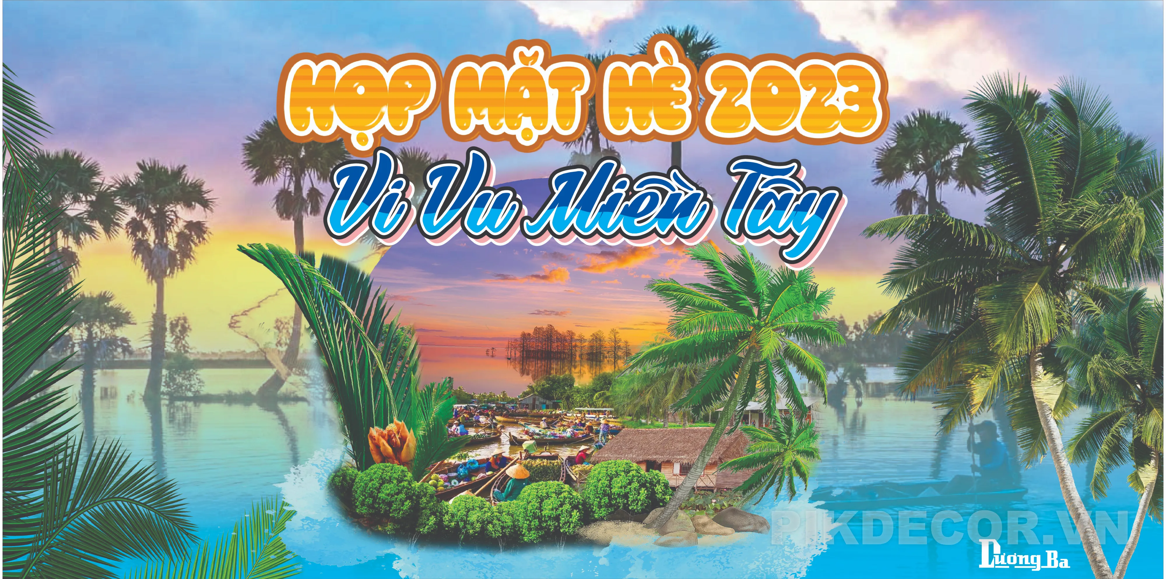 Mẫu Backdrop Họp Mặt Hè  Team Building Nghỉ Dưỡng Phong Cảnh Miền Tây Sông Nước Độc Đáo