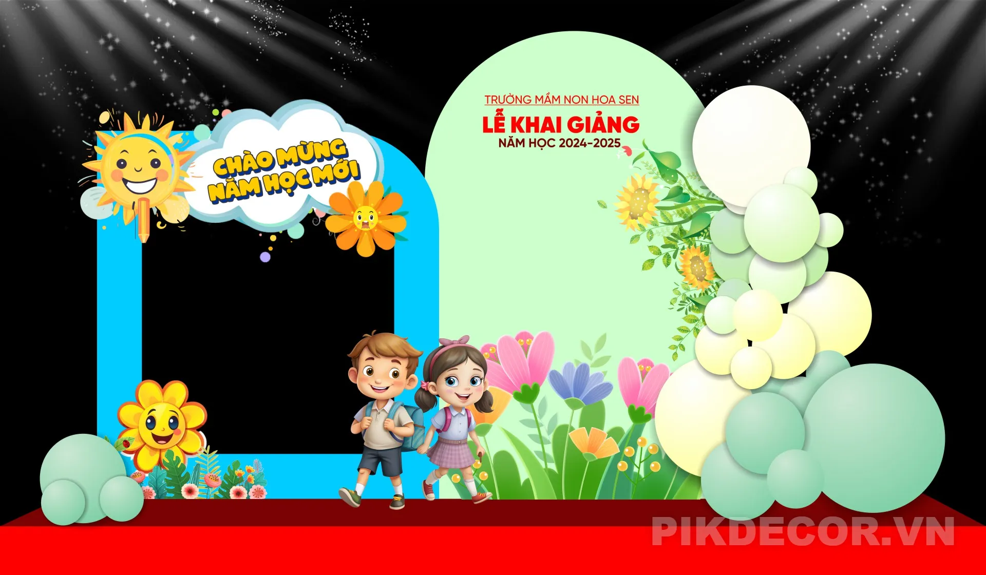 Mẫu Backdrop Khai Giảng Năm Học Mới – Trang Trí Sân Khấu Trường Mầm Non