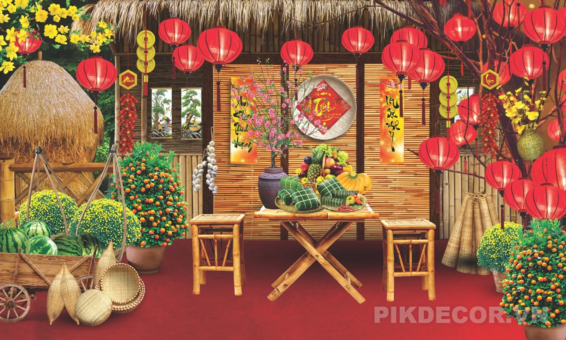 Backdrop Tiểu Cảnh Tết Mới Nhất Chuẩn In Ấn