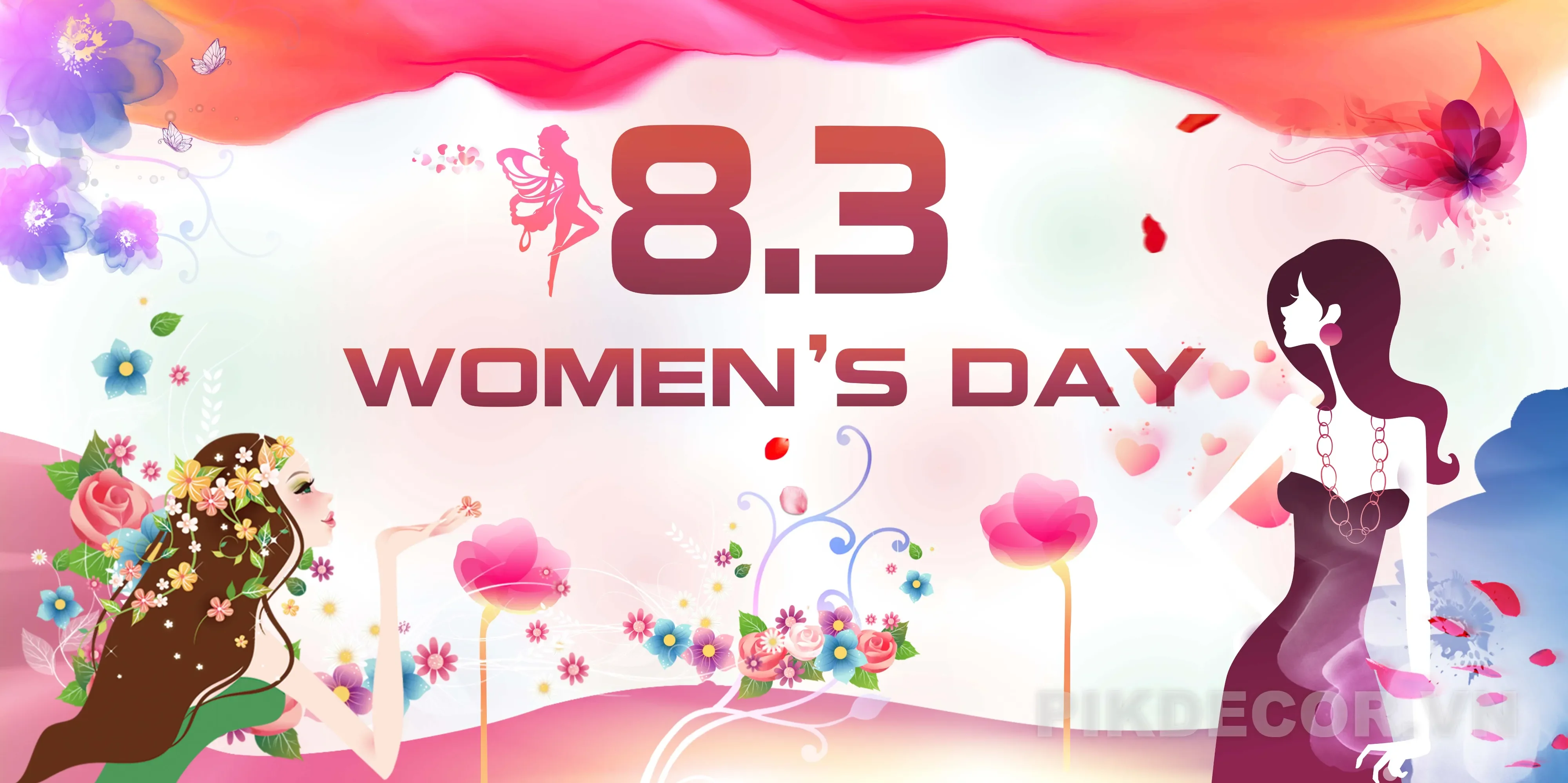 [ Decor ] Backdrop Mừng Ngày Quốc Tế Phụ Nữ 08-03 Hiện Đại, File Vector