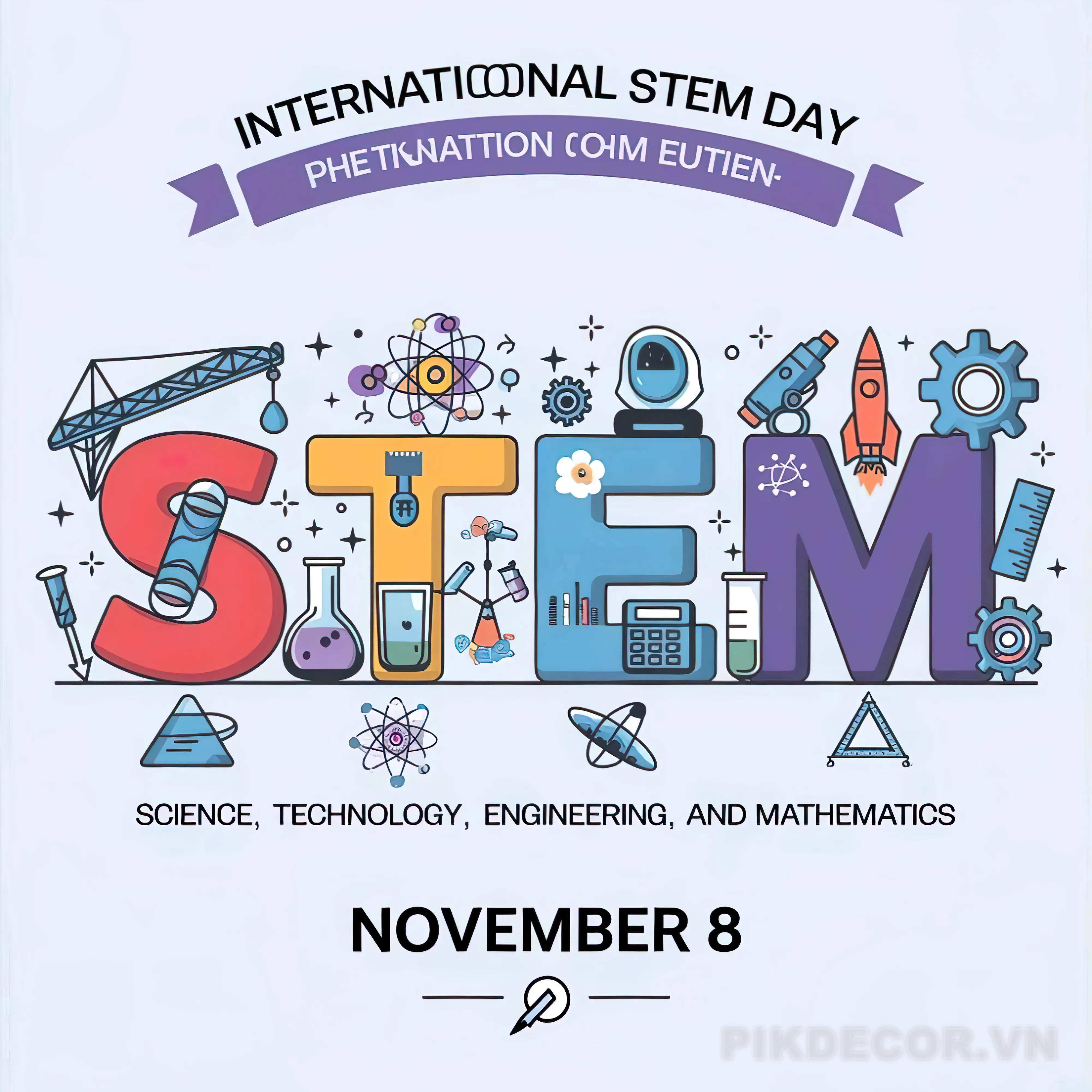 Mẫu Thiết Kế Stem Day Đẹp Nhất: Biểu Tượng Khoa Học Công Nghệ Kỹ Thuật Toán Học Sáng Tạo [File Vecto