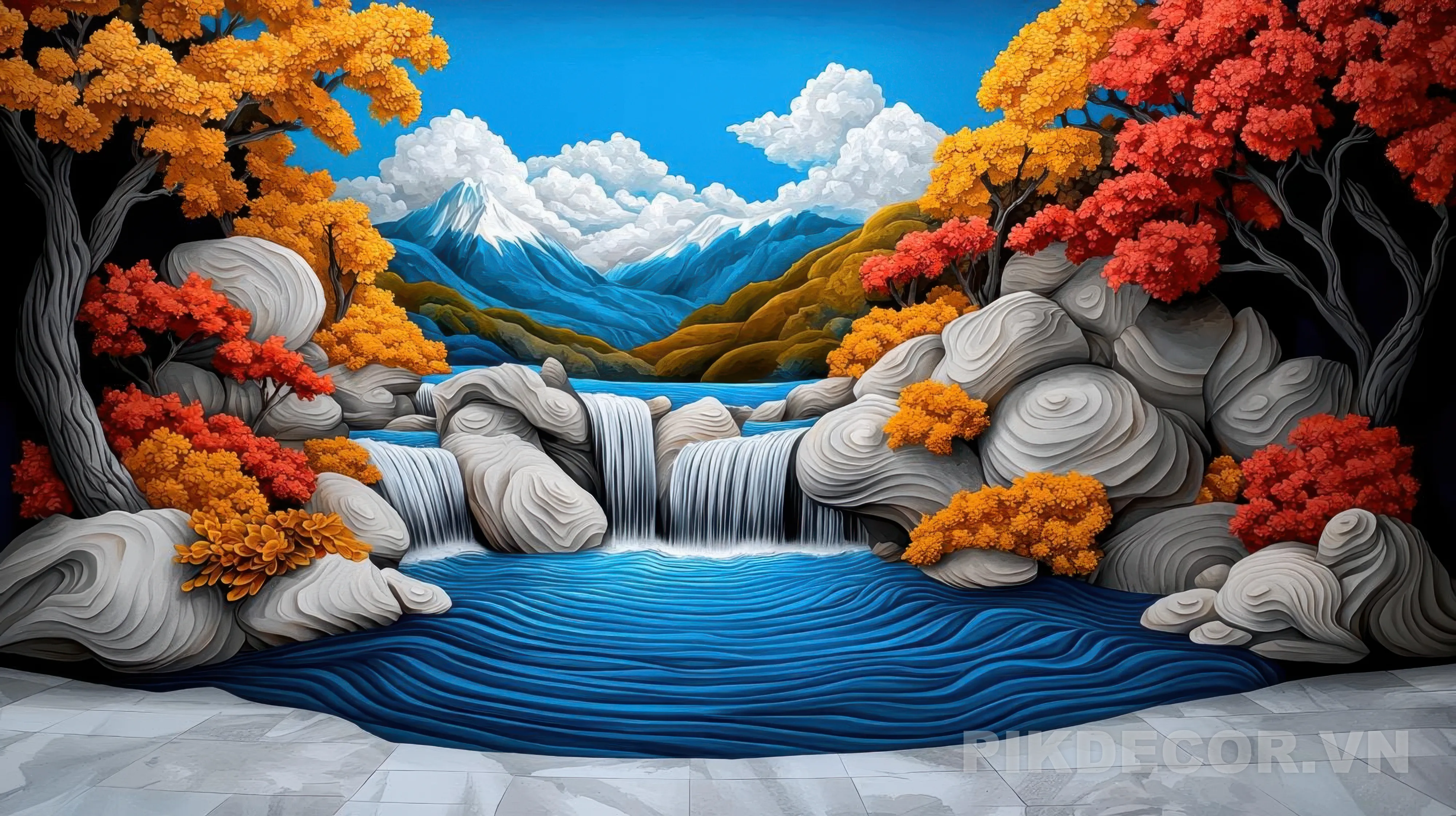 Tranh 3D Trang Trí Phòng Khách Hiện Đại – Núi Trừu Tượng Luxury Cao Cấp 265
